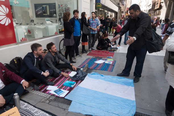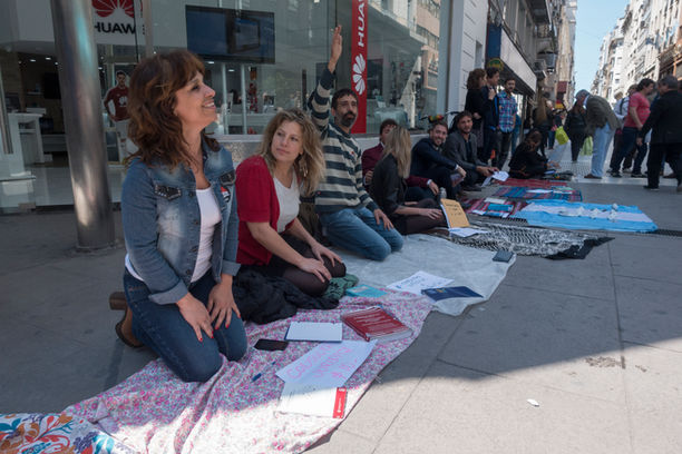The action consists of taking the public space with a group of twenty lawyers who worked in Mantero-mode setting up their offices on top of blankets on the sidewalks.